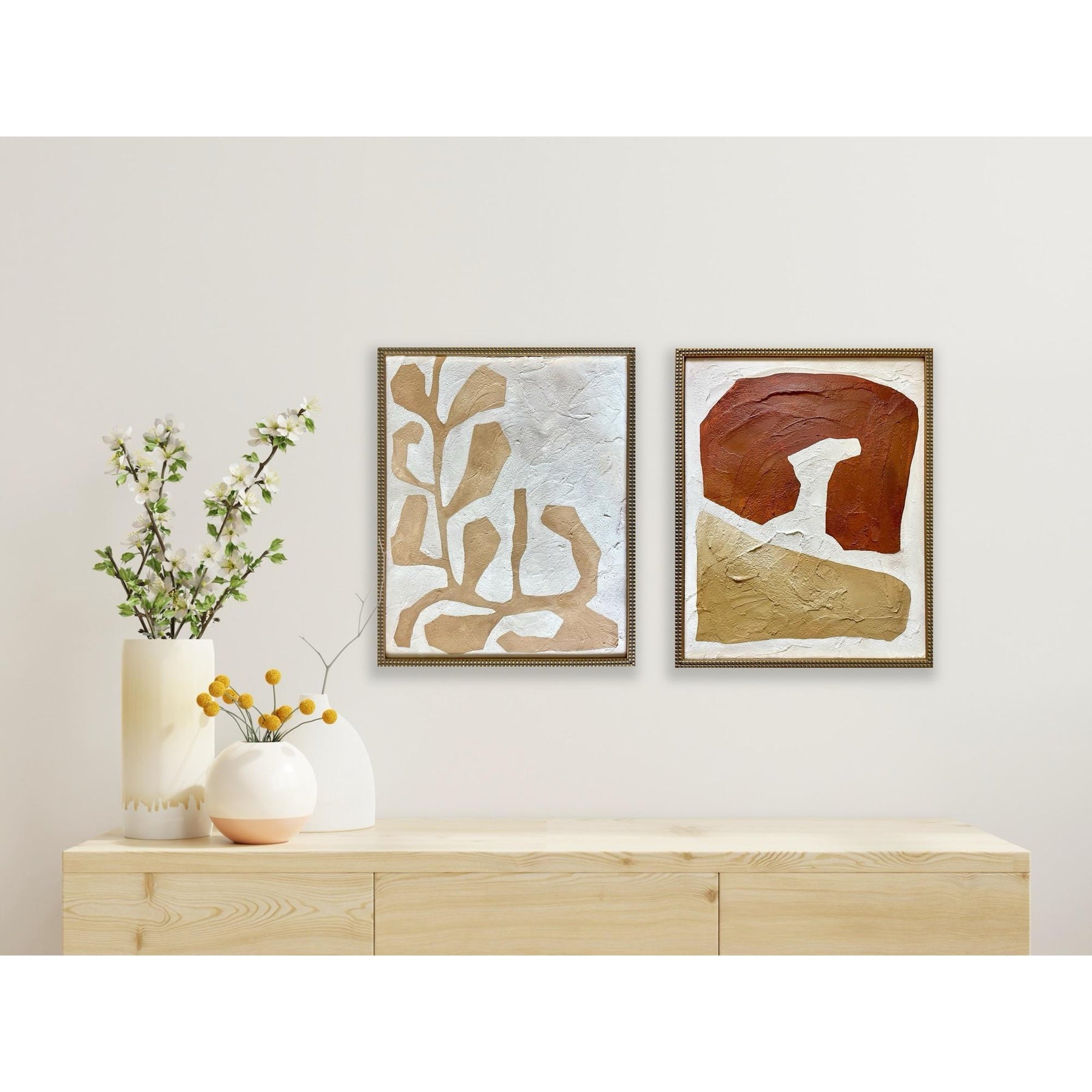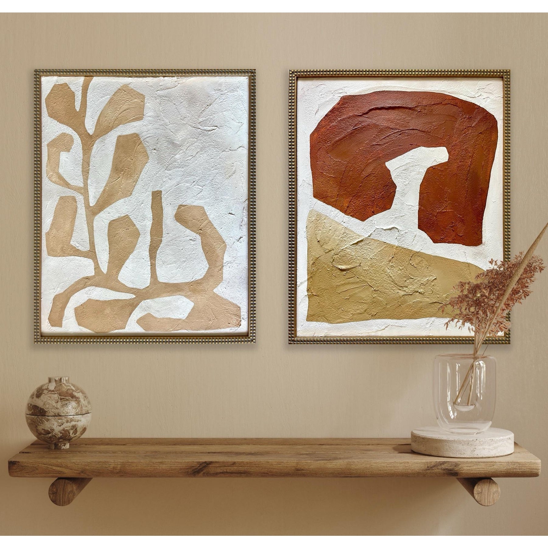 Contemporary abstract painting on canvas. Framed in a gold frame